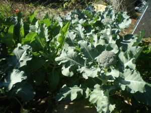 The cauliflower and broccoli were planted at the same time, although the broccoli has overtaken the cauliflower by a long shot. We’ll be enjoying the first of this season’s broccoli tonight. 🙂