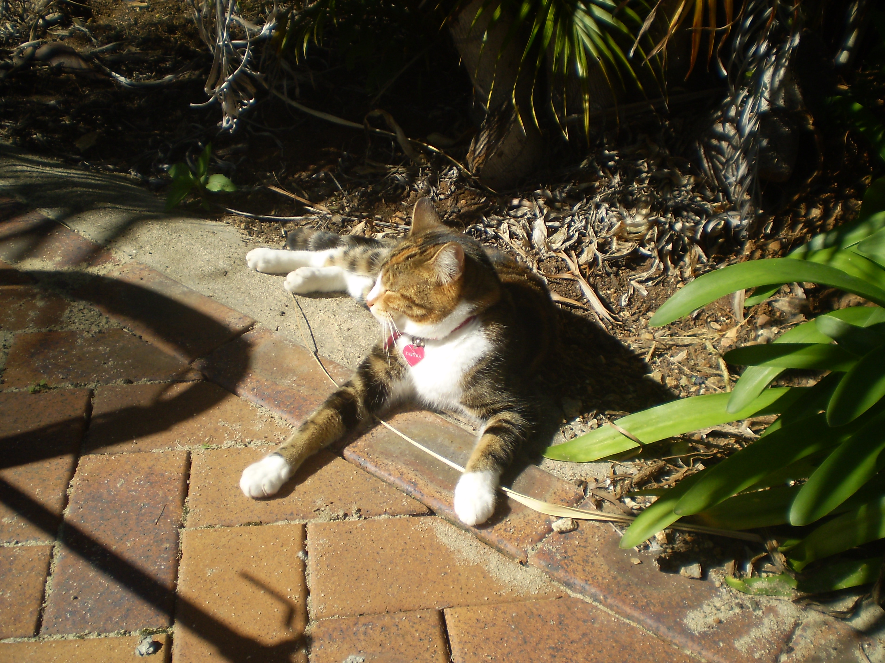 Little “Cutie Cat” and I enjoyed a wonderful wander around the garden this morning; with me photographing all of my green crops, nearly ready to be picked, and she pouncing out from behind bushes to grab at my hand, startling the daylights out of me as I stopped to pull out a weed here and there.