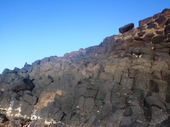Basalt lava, cooled over 20 million years, and split into columns of rock.