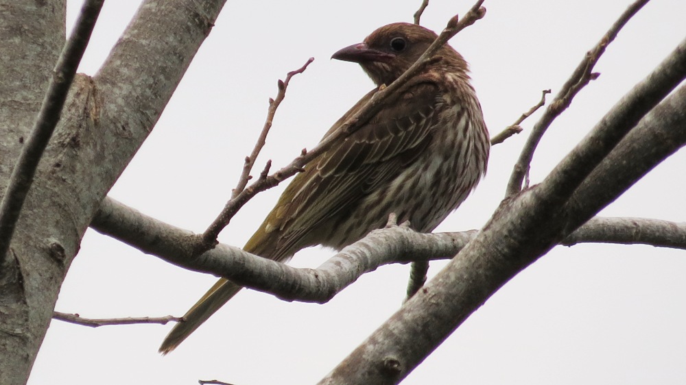 Other new visitors, known as a Figbirds, arrived in their multitudes! I only managed a decent photo of the female Figbird, although their were males here also. The main difference between the two was the red ring around the male’s eyes.