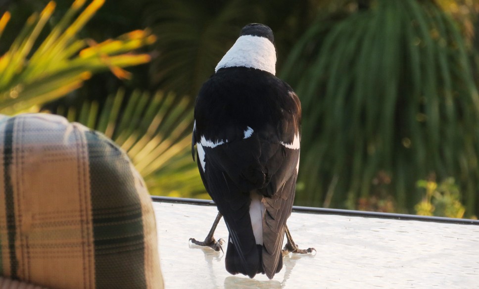 My faithful regulars, the Magpies, have a nest nearby and when the adults collect food and fly to the nest, I have often heard the tiny cheap-cheap sounds of the baby birds! I’m looking forward to meeting the new babies, when mama and papa bring them to visit, as I’m sure they will do eventually.