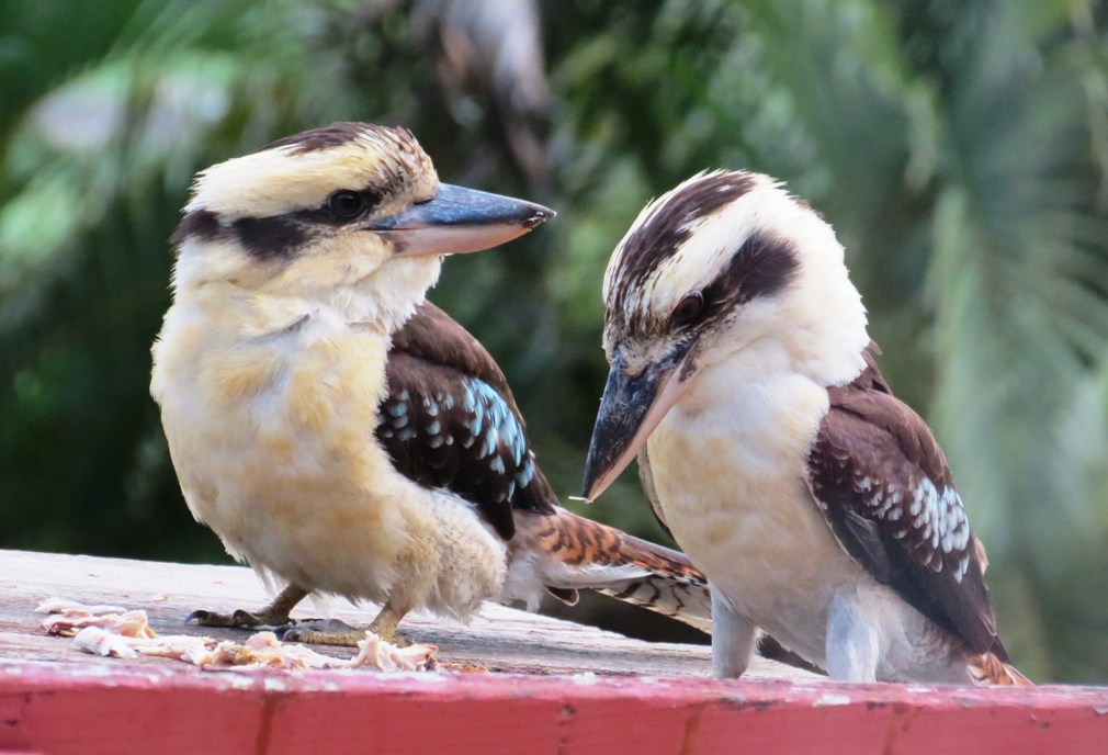 For example, they don’t arrive on my feeding table in pairs only, I can have any number of kookaburras here, sometimes up to eight at the same time, who intermingle amicably with one another. The facts confirm this to be so, that they do cohabit in a set area, even sharing the responsibilities of their young.