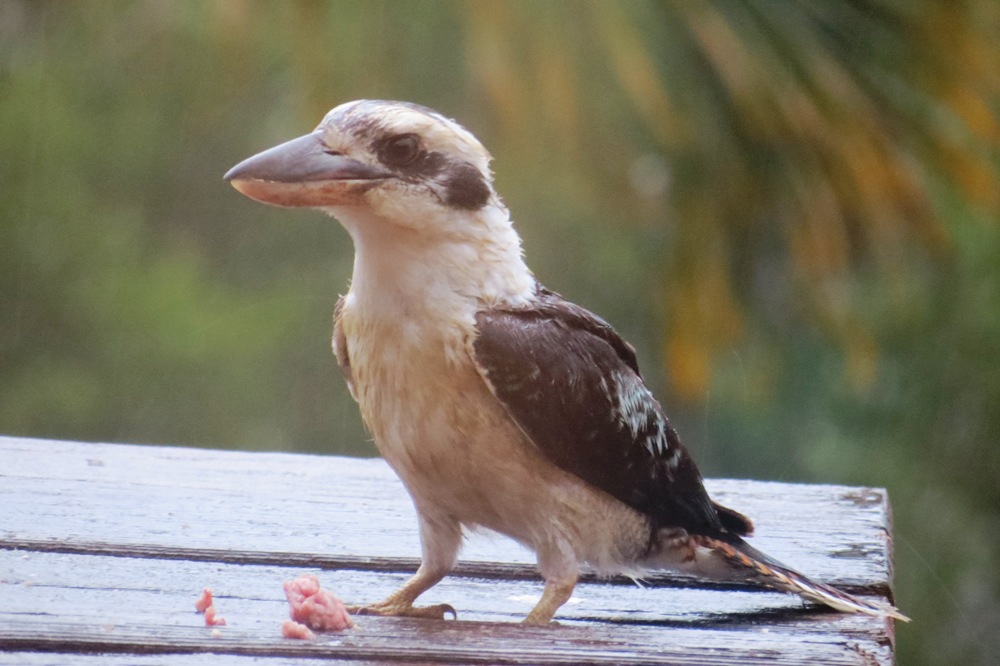 The second photo shows a bedraggled kookaburra on a dull day, with feather weighted down by the drenching rain.