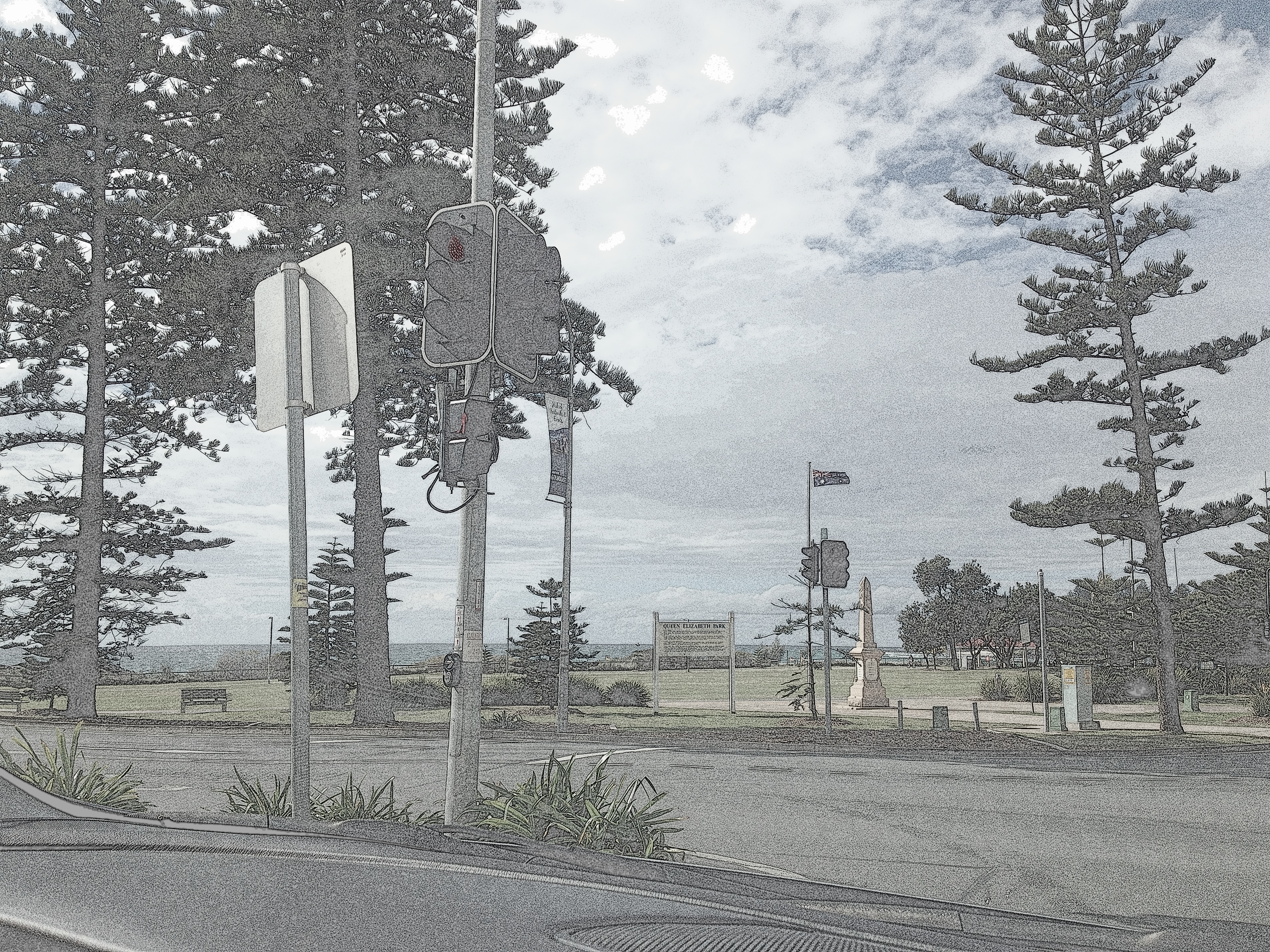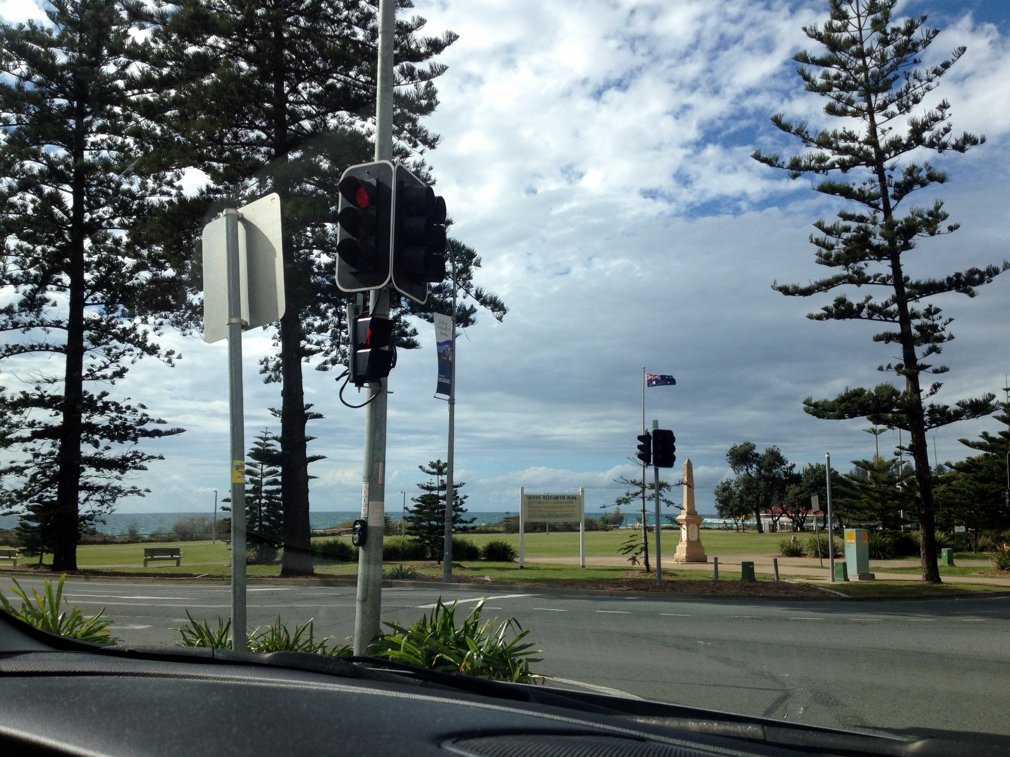 Heading home, I stopped at the traffic lights of a busy intersection, and with a clear road all around, and lights on red, I grabbed my iPhone and took a quick photo looking towards Coolangatta beach, which actually turned out rather well, I thought.