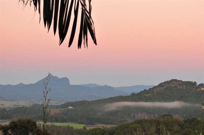 Before sunrise Mount Warning looked a tad grey, even the sky was grey. Then the sun peeked over the hill and lit up the morning sky.
