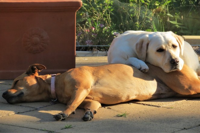 There’s nothing unusual about my next photo. Brontë always uses Forrest as a cushion when they spend time lying around outside.