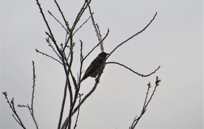 All of my figbird photos are taken from a distance. They are very shy birds who don’t get too close to people. This photo is as much about the tree as the bird, it’s my pecan nut tree, and the branches are showing signs of new growth. That means I won’t see the birds on the branches for too much longer, at least until the tree loses its leaves again next winter.