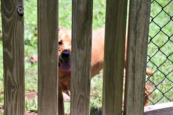 Before I went down the garden, I closed the gate on Brontë and Forrest, but not the gate Forrest is peeking at me through! That naughty dog must have climbed the chainwire fence near to the house, run along the outside of our garden and up through the broken fence at the bottom of our garden. The gate she is behind in the photo leads to the rear boundary of our yard, where the orchard is. She certainly knows how to get my attention, that girl!