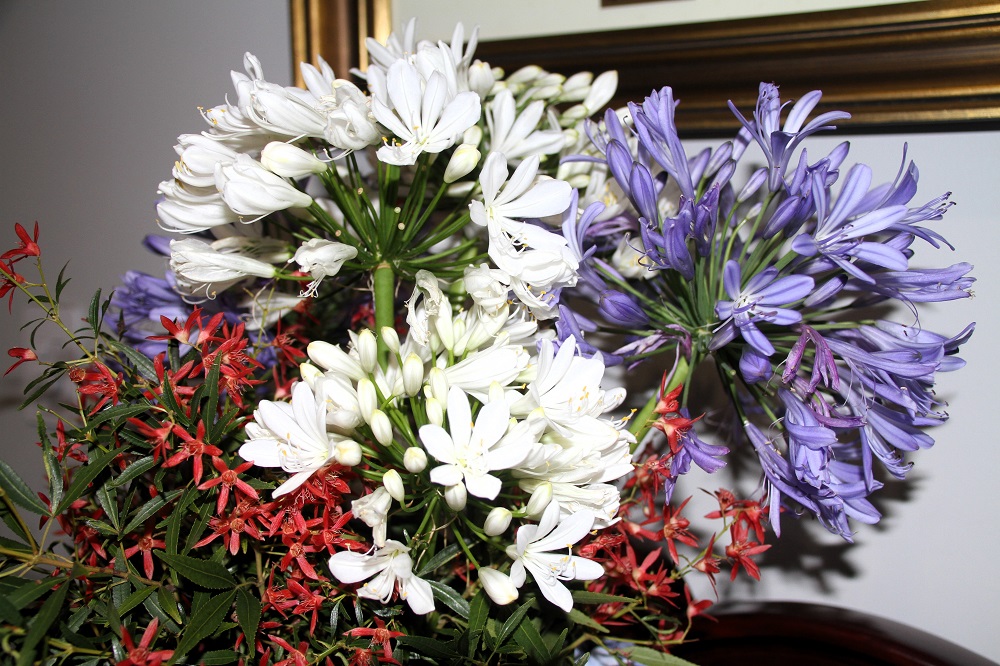 Here in the subtropics, the hydrangeas are in flower for many months. By Christmas time, however, the agapanthus looks bedraggled and the red stars of the Christmas bush have faded. My lovely trio simply always arrives one month too early for me to decorate the house for Christmas with them here in the subtropics, so I have to enjoy their indoor display prior to Christmas.