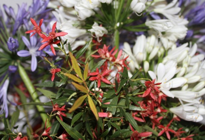 Today, however, I am sharing what I believe is a stunning combination of flowers and colours when together in a vase – agapanthus, hydrangeas, and New South Wales Christmas bush.