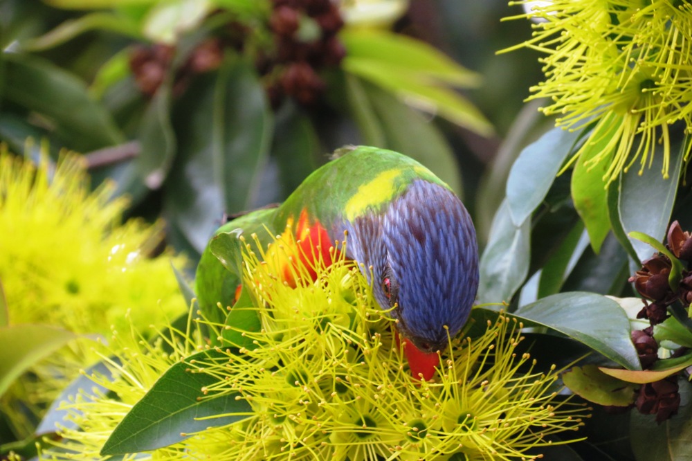 In May, this tree flowered profusely, to the delight of both myself, and the Rainbow Lorikeets.