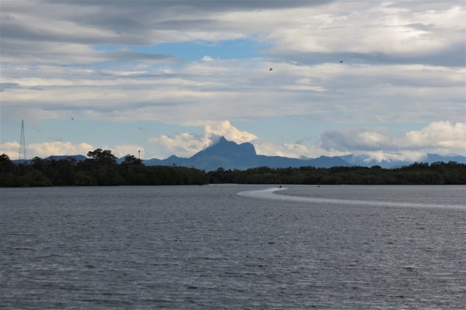 Our first stop was at Kingscliff. Rain was predicted this morning and thankfully it held off while the party was happening. There were masses of clouds lingering over the mountain though. My first photo of Mount Warning is taken looking across Cudgen Creek at Kingscliff.