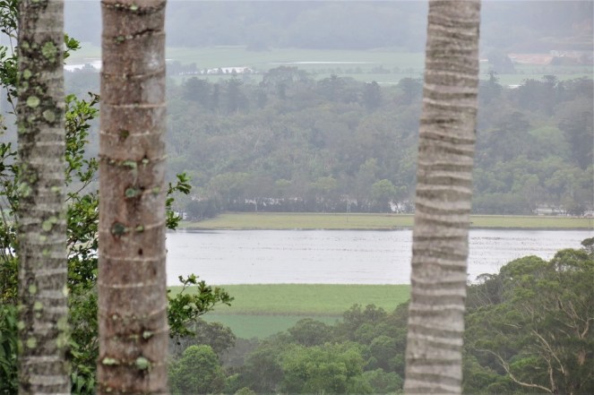 What looks like a massive pond in the valley is actually water-filled sugar cane fields.