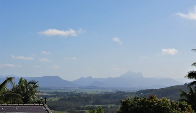 Satisfied that one tiny pee wee posed no threat to my lovely magpie family, I paused to take a photo of Mount Warning, which could be seen today, although not as clearly visible as it could be (first photo).