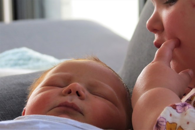 … but if there’s one photo I could add today that may just overshadow the photo of my first meeting with Eli, it’s one of Eli meeting his cousin, my beautiful granddaughter Aurora! ❤