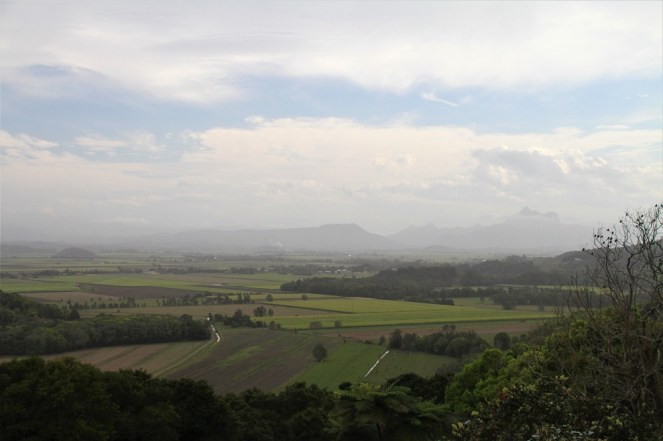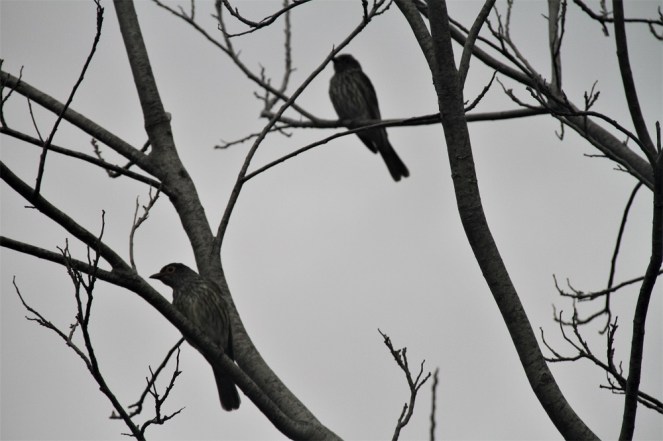 As you can see, the whole valley has the smoky-haze appearance today. If you look closely at this photo though, on the right there’s a bare-branched tree with more figbirds in it! I think it might be a Jacarada tree, so I’ll keep an eye on it and get some photos when it flowers.