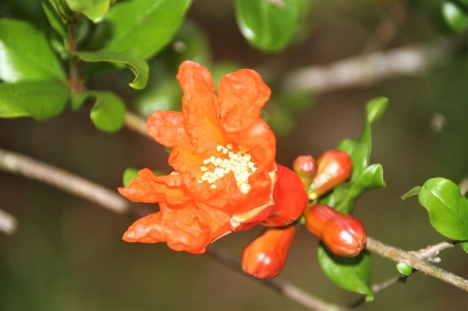 Another tree in flower is my Pomegranate. This is a fairly new addition to the orchard, but it had some beautiful big pomegranates on it during summer. There’s quite a few flowers on the tree now, so I could be in luck again this year.