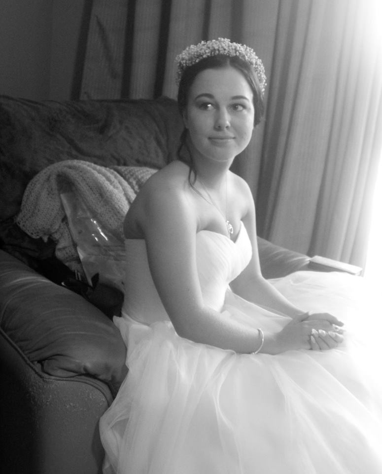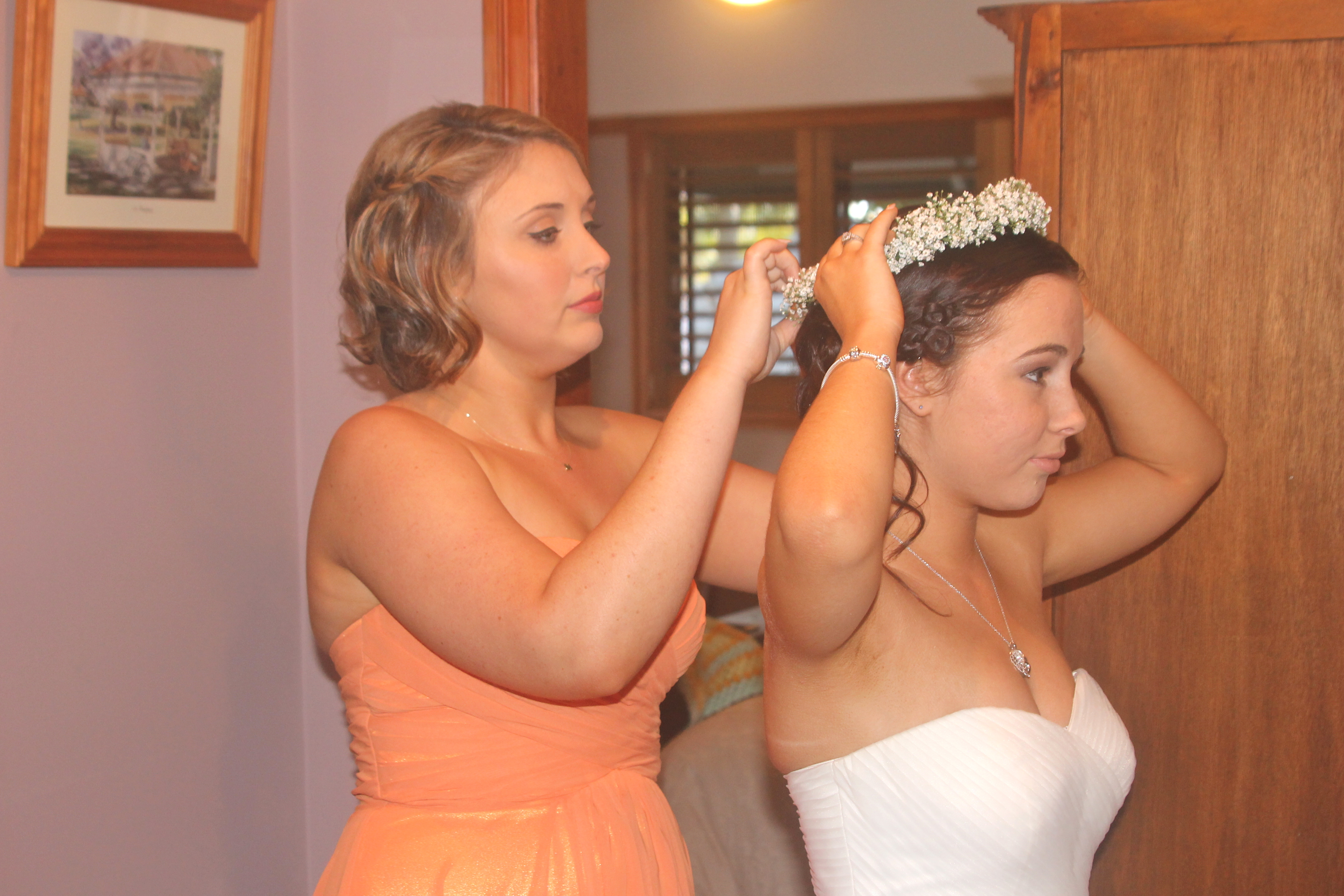Mary chose a dainty headpiece of Baby’s Breath to decorate her hair, so once that was in place, she was all set.