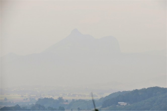 If you look carefully at the last photo you will see the faintest outline of Mount Warning. I took this photo quite early in the day, and the view of the mountain became even fainter, if that’s possible, this afternoon. Perhaps tonight’s rain will wash away the haze and I will have a clearer image of the mountain to share tomorrow.