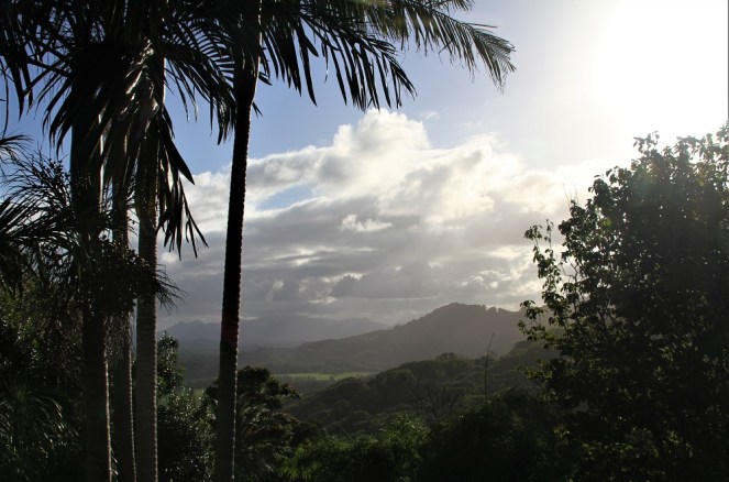 This afternoon, I had another visitor in my front garden, right near the front door. Yesterday it was the Pee Wees and a Butcher Bird – today, a Kookaburra. It’s my guess that the birds enjoy the coolness of my front garden, which is why they have been spending time there during the afternoon of the past two days. The weather has warmed again, but the humidity isn’t too bad at all.