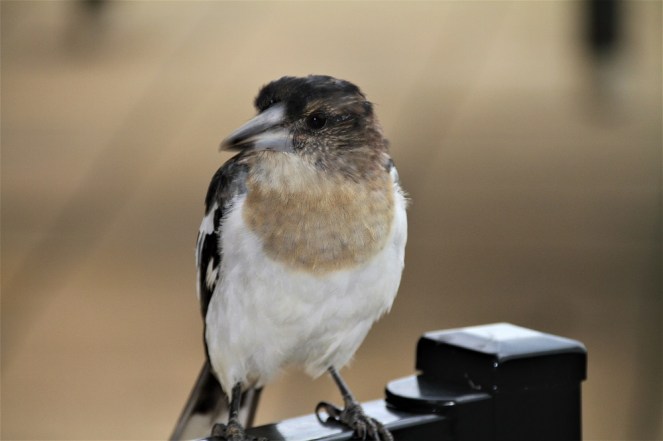 Joining me to enjoy the early morning view from the tibouchina tree was my little Butcher Bird friend, Hoppy (of gammy leg fame) …
