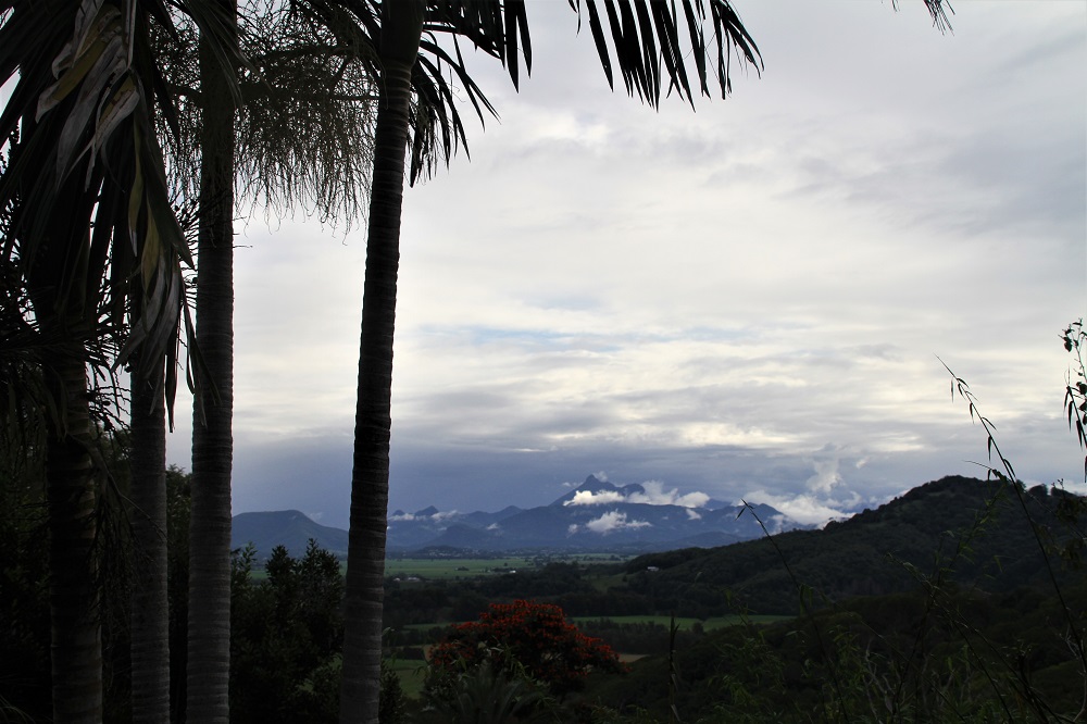 The sky had the slightest tinge of pink early this morning, (although it doesn’t show up in the photo) and as the day progressed and the low cloud cleared, Mount Warning stood beautiful and clear in all her blue-green glory. I must be growing used to seeing clouds over the mountain though, as I chose this photo over clearer sky photos I took later in the day due to the character clouds add to the early morning sky.