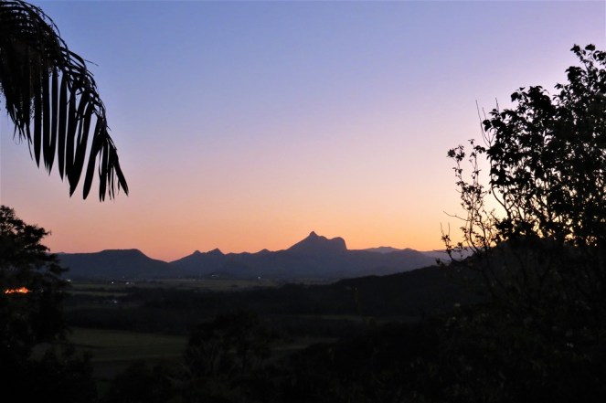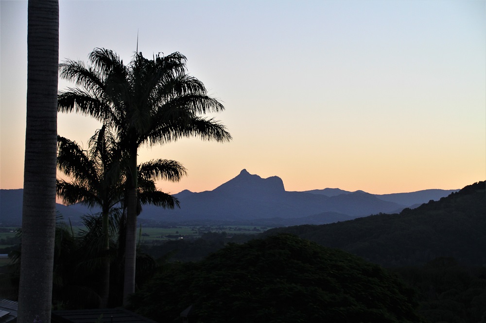 Walking up the driveway to the letterbox yesterday was just a tad slippery after The Great Wet, but today it had dried out somewhat. I took the photo of Mount Warning late this afternoon from the top of the driveway, and just look at the sky – not a cloud in sight. 🙂