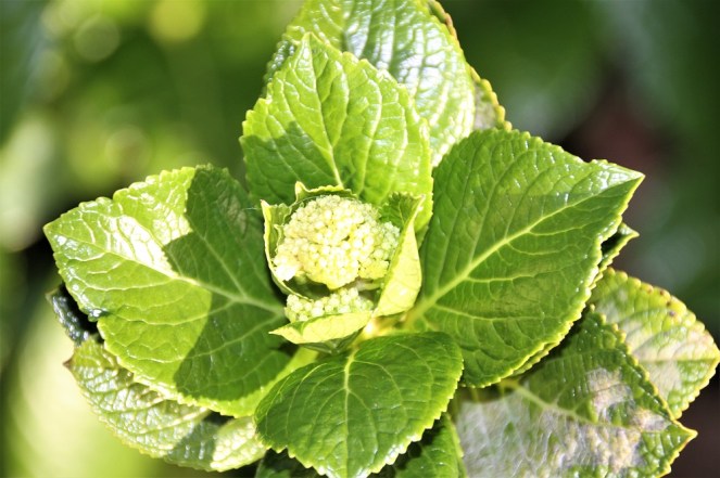 Call me old fashioned – many have! – but to me, a garden just isn’t homely enough without a hydrangea plant or two. During summer I water the hydrangeas every day, remove leaves looking anything but pristine perfection immediately (to prevent any possibility of disease) and prune the old flowers to promote a longer flowering season. I also feed my hydrangeas, as well as several other flowering plants, with a regular dose of seaweed solution which I find improves the health of all plants, either decorative or edible. The start of my first hydrangea bloom only appeared a couple of days ago and I’m keeping a close eye on it to watch its development.