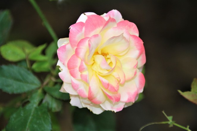 There is so much new growth on my Camellia shrub that I needed to trim a few branches which were beginning to encroach on a walkway … and kept a few for my vase. I also noticed buds beginning to form, so took care not to take any of those branches. The foliage is beautiful and glossy, but you will notice the telltale signs of insect nibbles and heat scorch on the leaves. Hopefully, this will end as the weather cools.