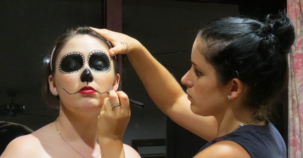 Now that’s more like it, I know these two girls, my beautiful daughters, Emma and Hayley. Hayley loves playing around with makeup and creating different effects, so when Emma asked her to turn her into someone who even her mother wouldn’t recognize, eg, The Lady of the Dead, (as you can see in the photo on the phone in Hayley’s hand,) Hayley was all for it!