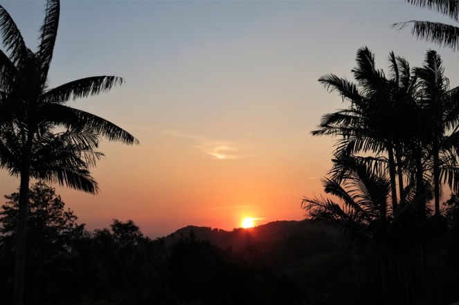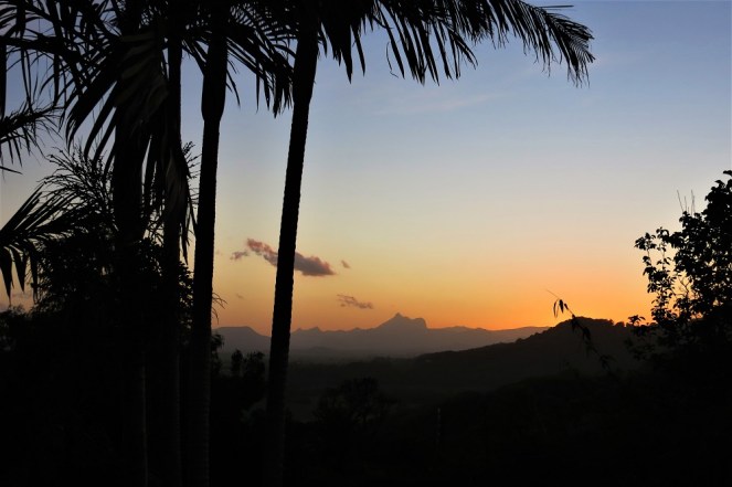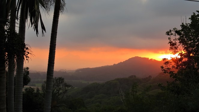 During our recent hot, humid, hazy weather, I have noticed that the best time of day to take photos of the valley is either first thing in the morning – before the valley begins to look hazy – or later in the day – after the haze has been burnt off and replaced by a sunset. Caught up as I am in the mornings though, feeding both my domestic menagerie and the local birds, (oh, and myself!) I tend to forget to take photos of the mountain in the morning. When the camera is out, it’s to take photos of my feathered visitors, such as this friendly kookaburra, sitting right beside my window.