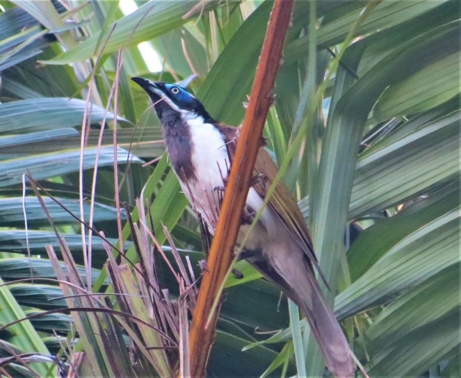 A few birds dropped by to admire the misty ocean too. This little guy in the palm tree is an adult honeyeater. Juvenile honeyeaters have yellow around their eyes which progressively turns bright blue by the time they are around eighteen-months old.