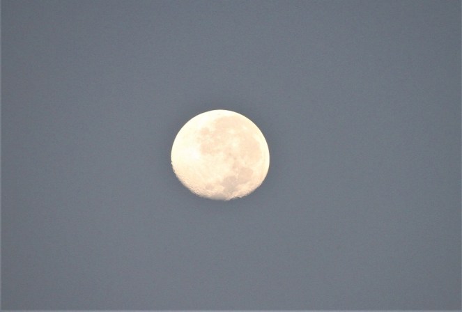 … an early visitor arrived to join me in admiring the view, as the “waning gibbous” morning moon looked down on us from the waking sky.