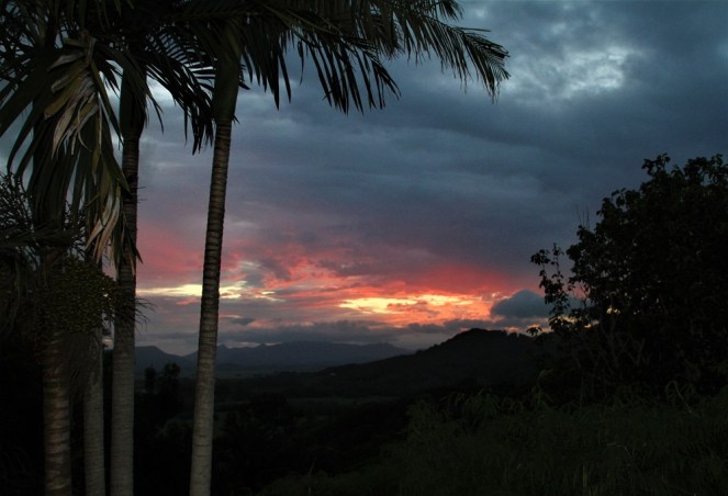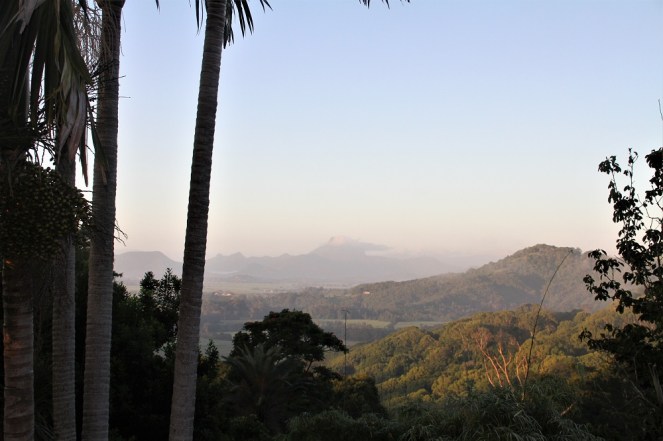 The sky had the slightest tinge of pink early this morning, (although it doesn’t show up in the photo) and as the day progressed and the low cloud cleared, Mount Warning stood beautiful and clear in all her blue-green glory. I must be growing used to seeing clouds over the mountain though, as I chose this photo over clearer sky photos I took later in the day due to the character clouds add to the early morning sky.