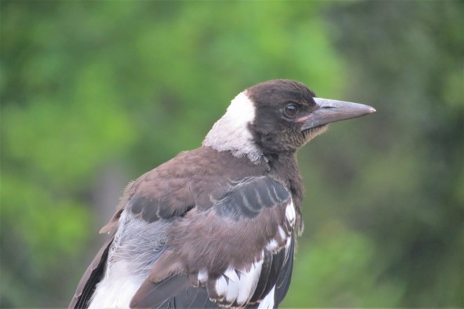 Little baby magpie has become a regular visitor every morning too. He/she usually visits with both his/her parents now, but I’ve noticed the father usually feeds baby.