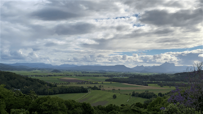 I could see the Condong Sugar Mill clearly this morning too, with bright green cane fields in the foreground and rolling hills behind.