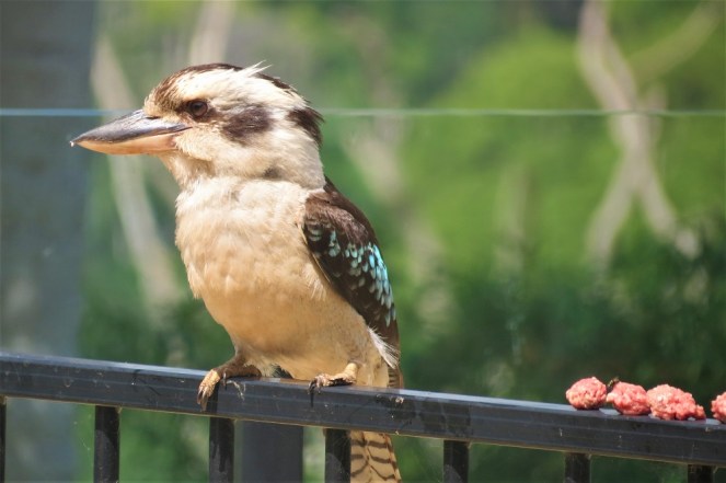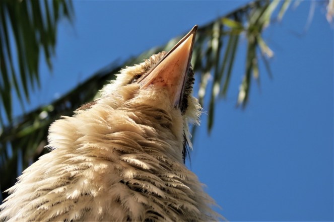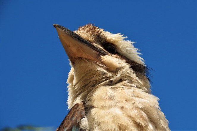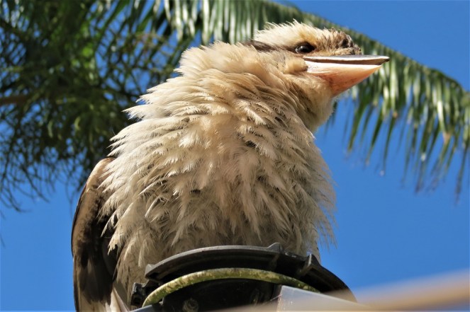 I could not believe the change in his feathers! I have seen kookaburras fluffed up against the cold before, but this was the first time I have seen it closely, and in warm weather. Their individual feathers are surprisingly fine and delicate for such a robust bird.