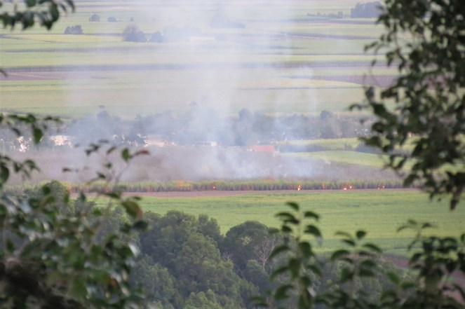 Meanwhile, we heard the crackling sound of a sugar cane fire starting in the valley.