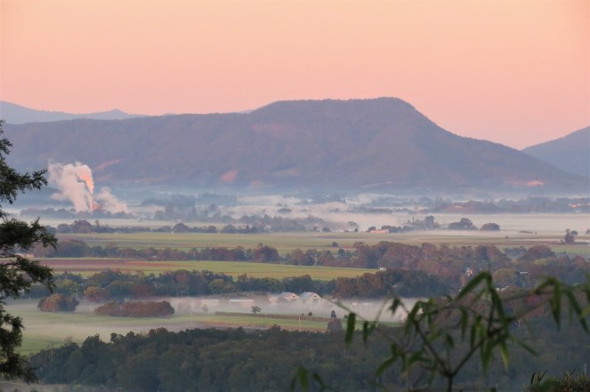 There was mist in the valley again this morning. Now the weather is warming up I will probably see fewer misty mornings, so I can’t resist taking photos of the effects of cooler weather while they last.