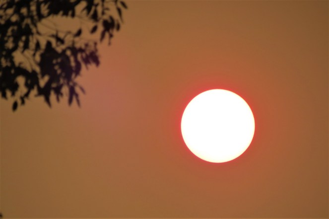Over the past few days, my blogging friend, Carol, has been on my mind a lot. She lives in Oregon, near where the horrendous fires in the USA are, and she has been on constant evacuation alert. Carol spoke of the red orb of sun, and I knew what she meant as the sun took on that almost glowing, eerily red appearance during the latter months of last year and early this year in New South Wales, where I live. At that time I wasn’t blogging regularly, so I thought I’d post some photos that I took around that time today.